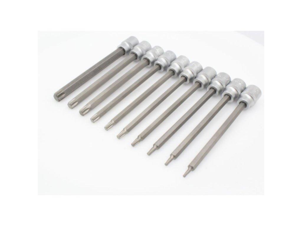 - Sada obsahuje: 10 nástrčných hlavic s rozměry vhodnými pro nejčastěji používané Torx šrouby, vyrobených bez tamperu.