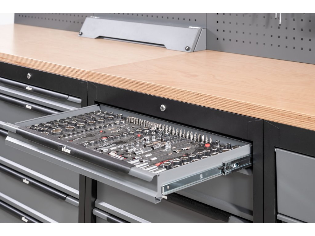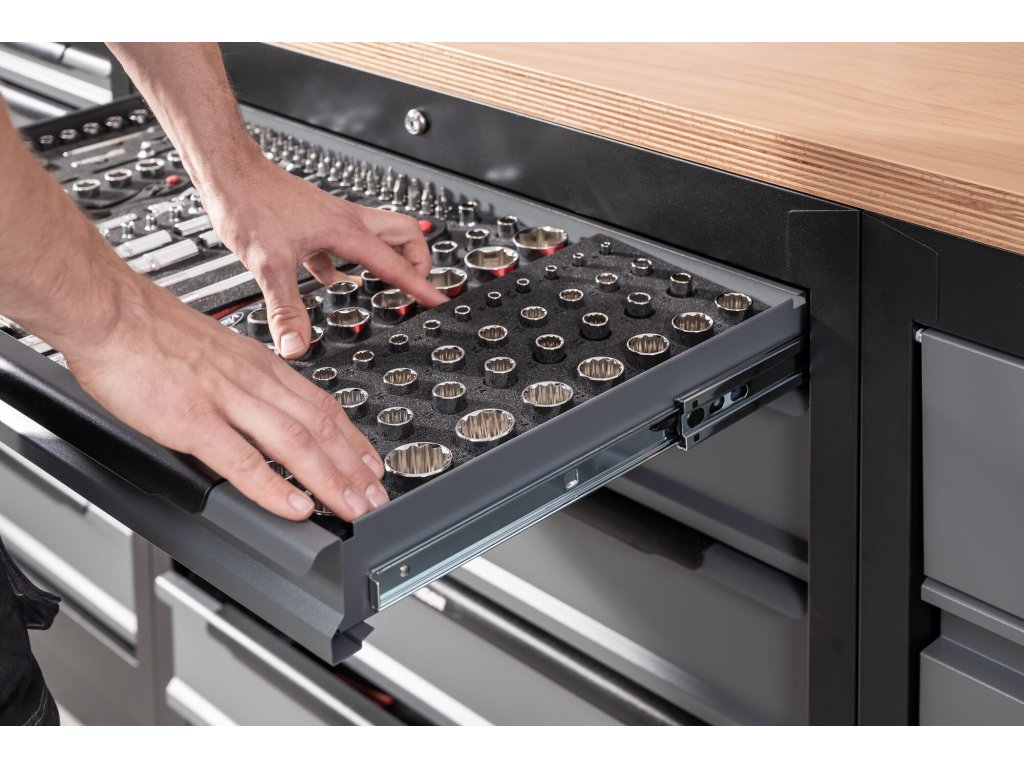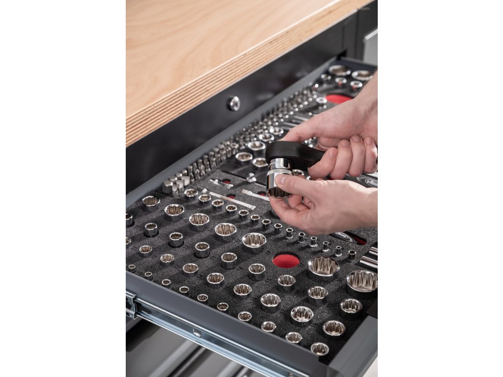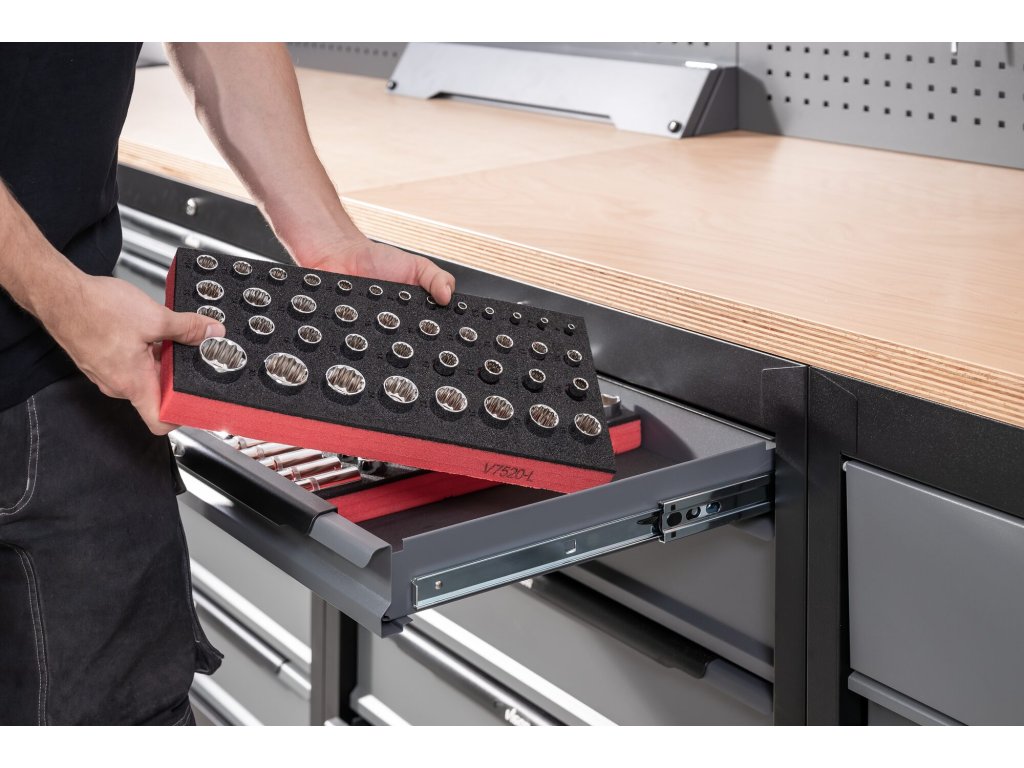 - Tato vložka umožňuje snadnou organizaci nářadí díky předem definovaným místům pro každý klíč a zároveň chrání nástroje před poškozením díky neklouzavému uložení.