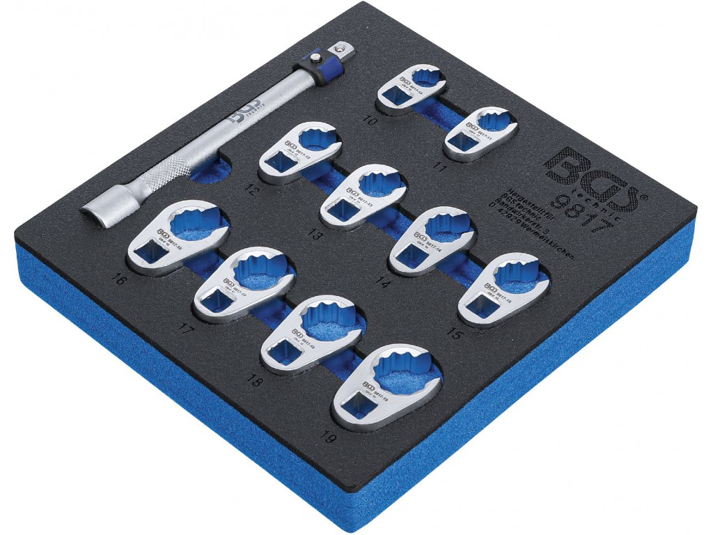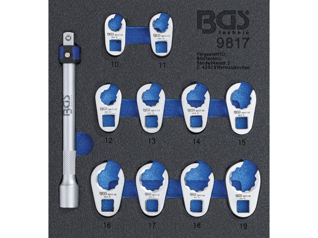 BGS 9817, Vložka do dílenského vozíku 1/6: sada plochých otevřených klíčů | 10 mm (3/8") | 10 - 19 mm | 11dílná