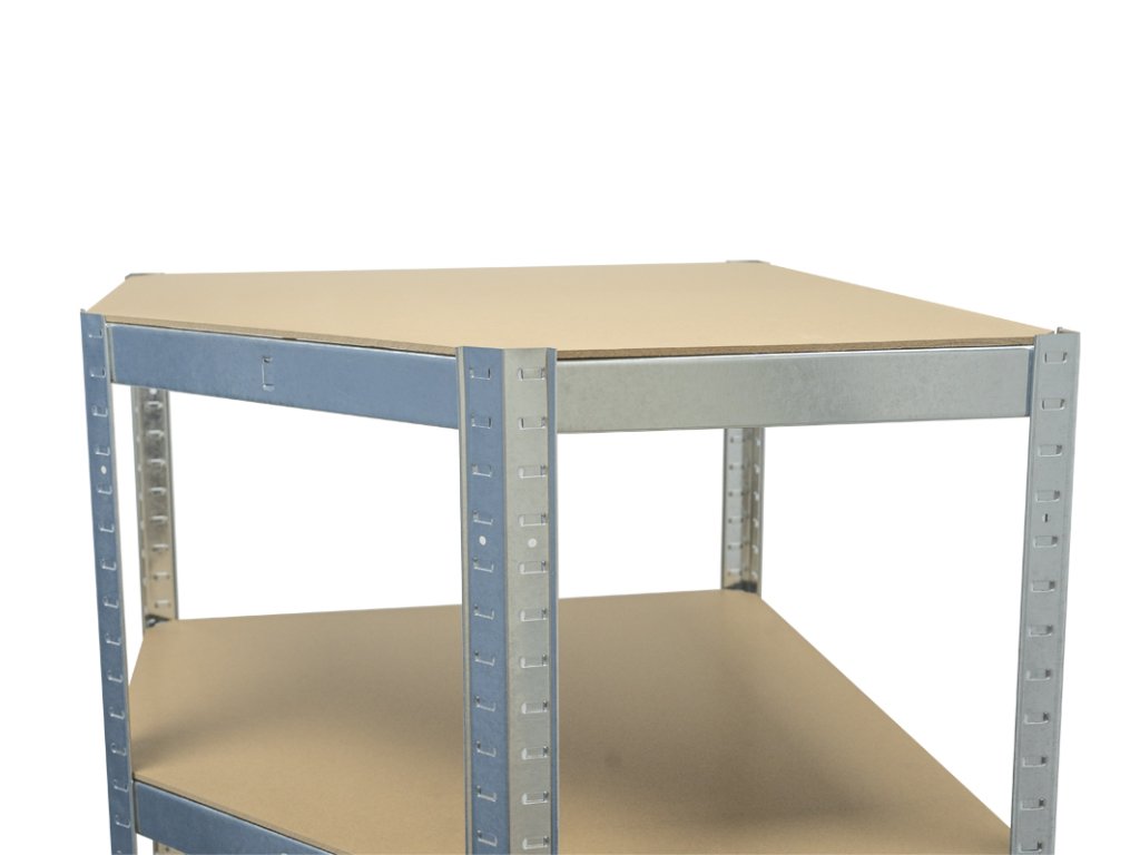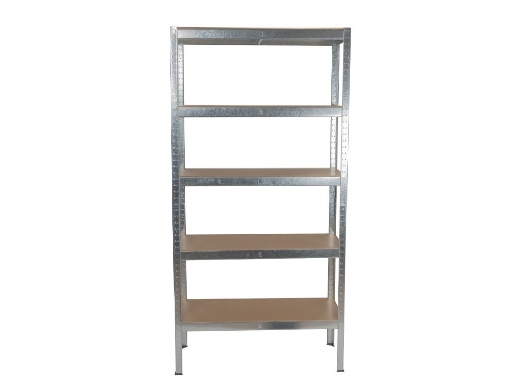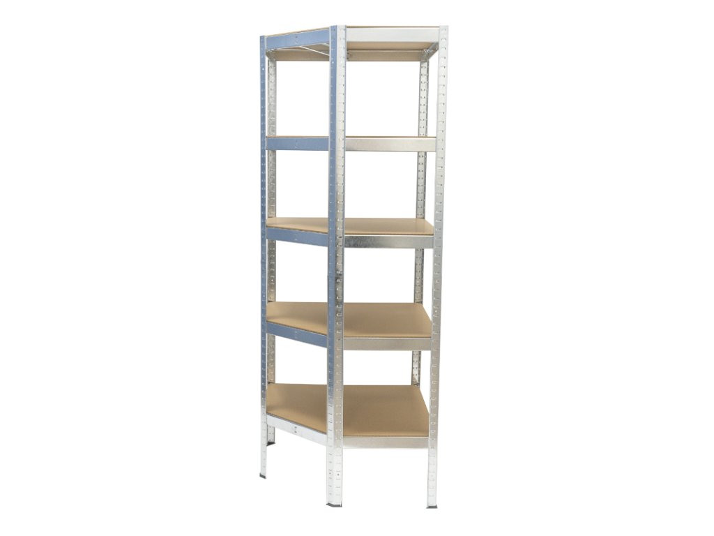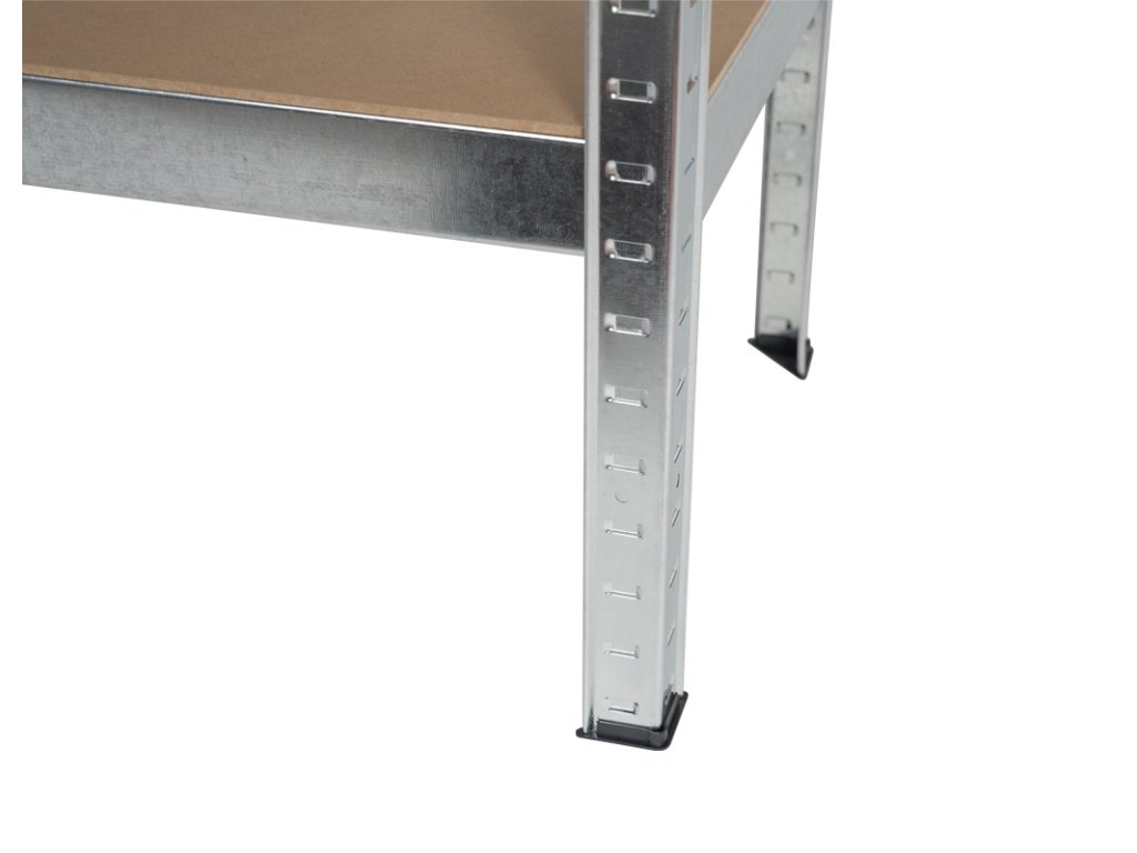 Regál má stabilní konstrukci díky čtyřem kovovým stojnám. Pevné MDF police dále zvyšují celkovou robustnost konstrukce, přičemž jejich tloušťka je 4 mm. Každá police má nosnost až 500 kg, což umožňuje skladování těžkých předmětů.