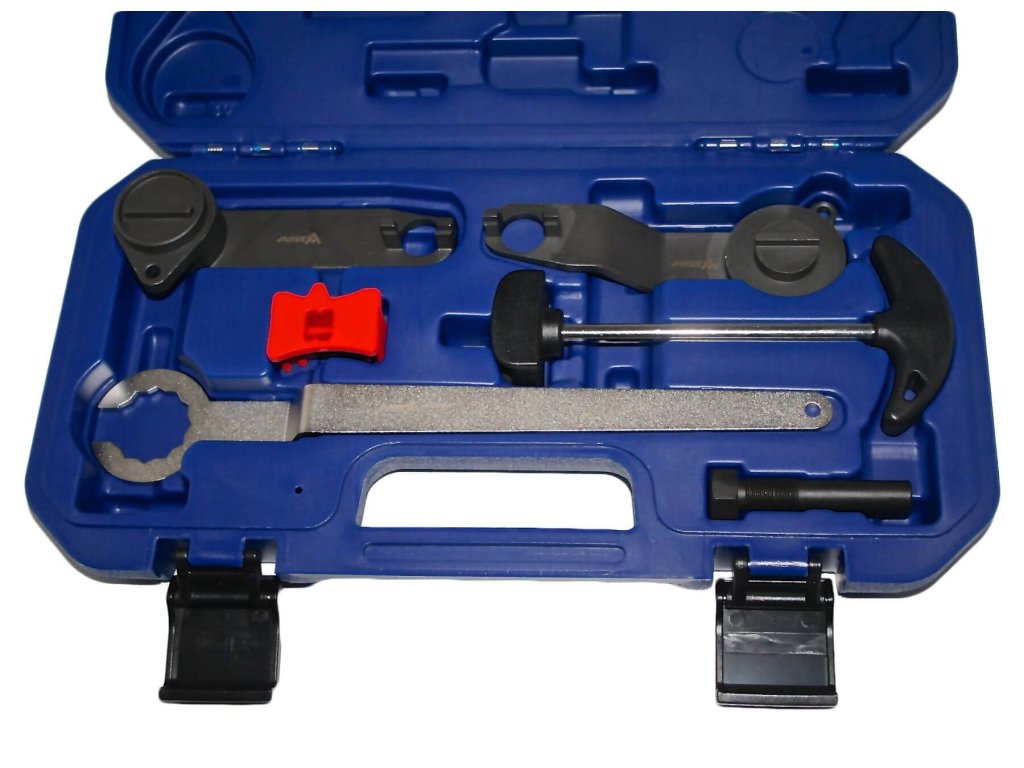 Profesionální sada aretačních přípravků pro pětiválcové motory Audi 2.5 TFSI. Umožňuje přesné aretování rozvodového mechanismu během opravy nebo výměny. Obsahuje nástroje pro...