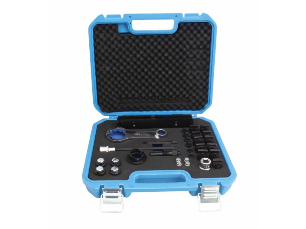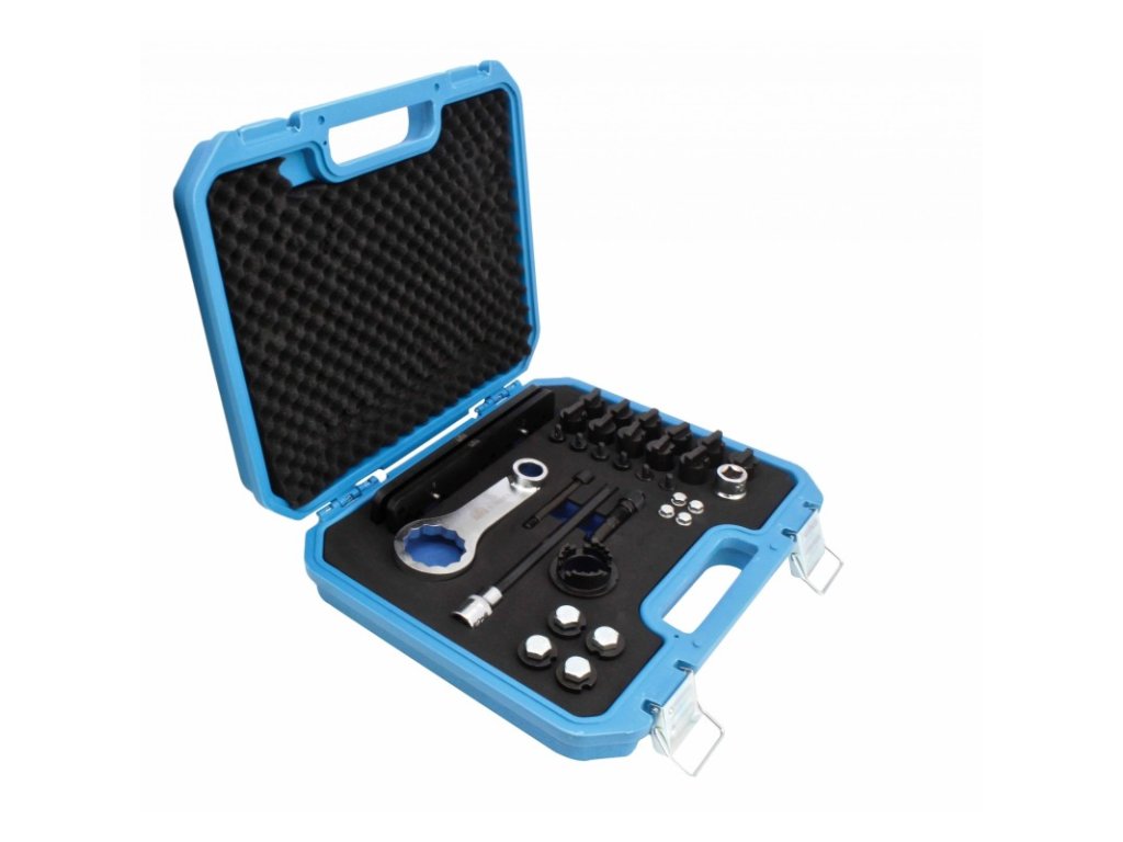 Profesionální sada aretačních přípravků pro pětiválcové motory Audi 2.5 TFSI. Umožňuje přesné aretování rozvodového mechanismu během opravy nebo výměny. Obsahuje nástroje pro...