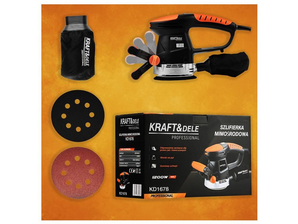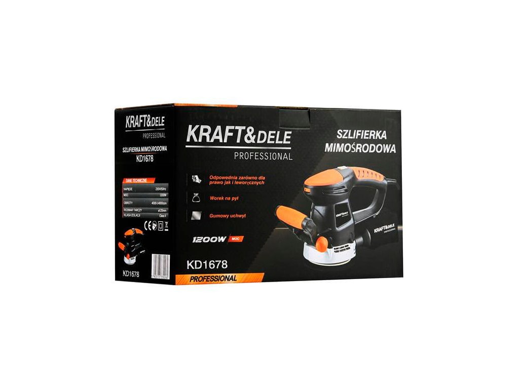 - excentrická bruska KD1678 značky Kraft&Dele určená pro domácí i profesionální použití