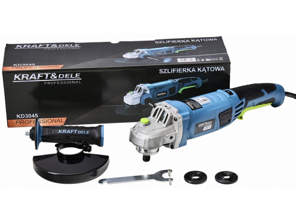 - úhlová bruska KD3045 značky Kraft&Dele je určena k řezání, broušení a leštění materiálů, jako je kov, beton, keramika, plast i kámen