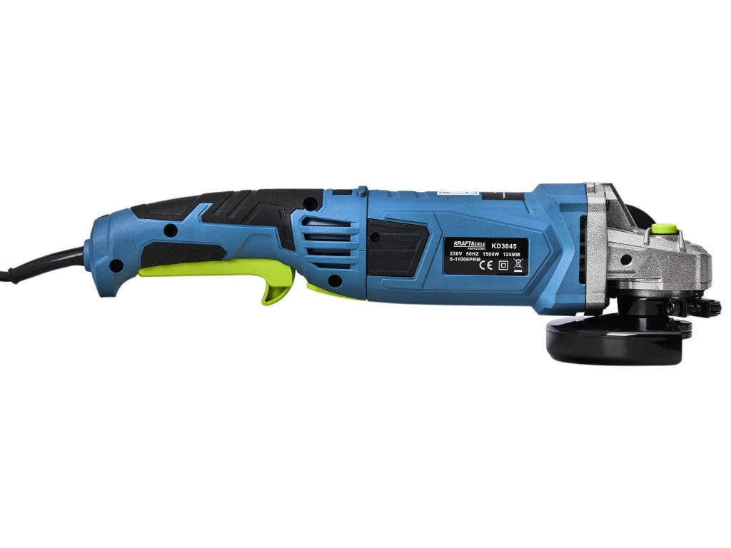 - silný motor 1500 W umožňuje bezproblémové použití všech typů brusných a řezných kotoučů do průměru 125 mm