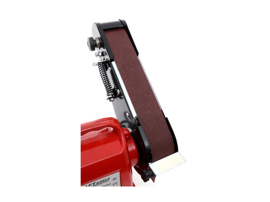 - Model kombinuje brusný kotouč o rozměrech 150 x 12,7 x 20 mm a brusný pás 686 x 50 mm s optimalizovanou zrnitostí pro různé povrchy.
