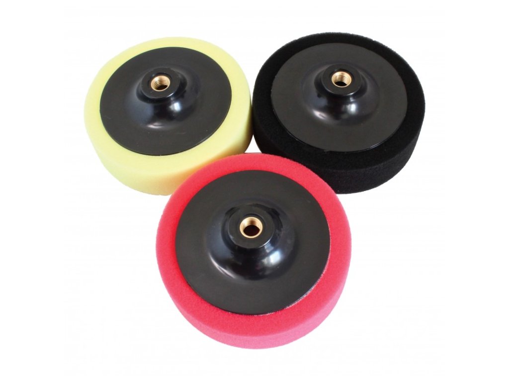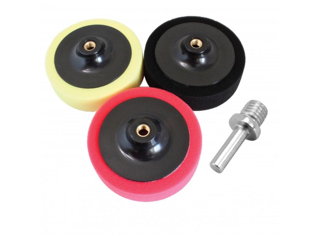 - Leštící houby: 3 ks různých tvarů o průměru 150 mm se závitem M14.