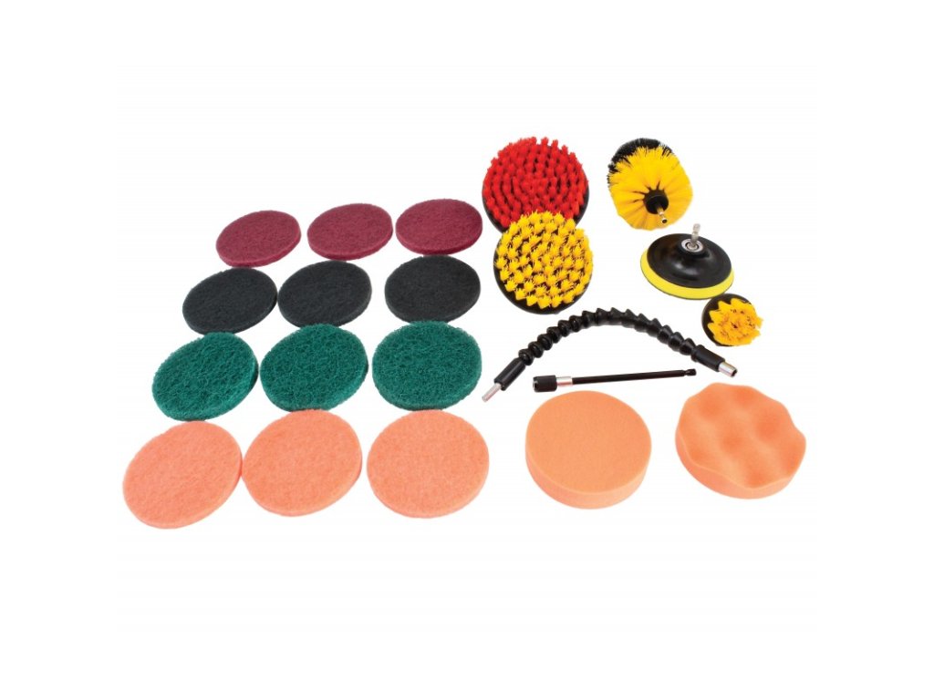 Sada kulatých kartáčů pro efektivní čištění. Nástavec 1/4” pro snadné uchycení na vrtačku. Vhodné pro čištění těžko přístupných míst. Odolné materiály z polypropylenu a oceli....