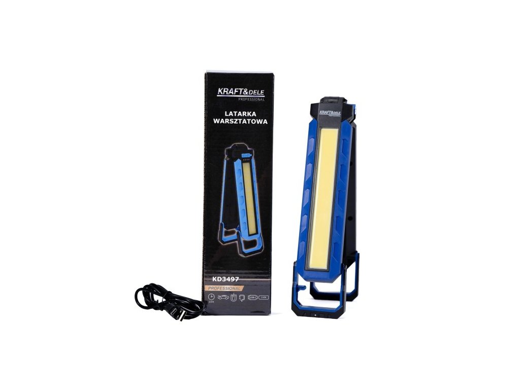 LED dílenská latarka Kraft&Dele pro profesionální použití v dílně i na stavbě. Díky výkonu 20W a 100 LED diodám 2835 poskytuje jasné a rovnoměrné osvětlení. Odolné pouzdro z ABS...