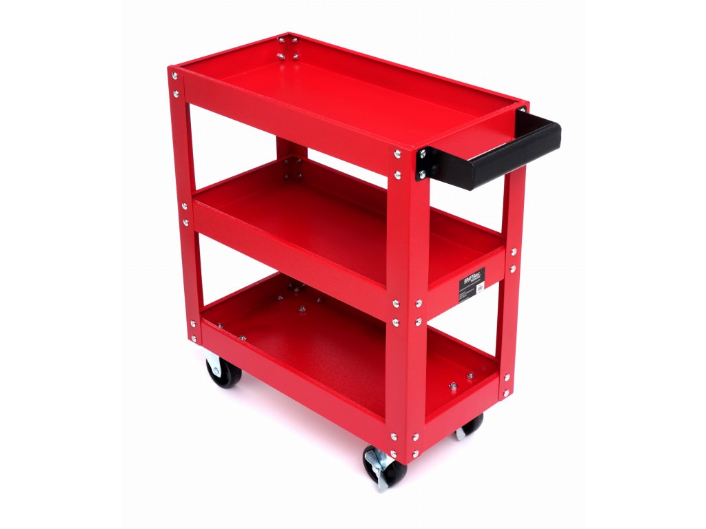 servisní vozík VIGOR V4758 s robustní ocelovou konstrukcítři police s nosností 40 kg každá – celková nosnost 120 kgnastavitelná prostřední police v 7 výškových stupních (po 30...