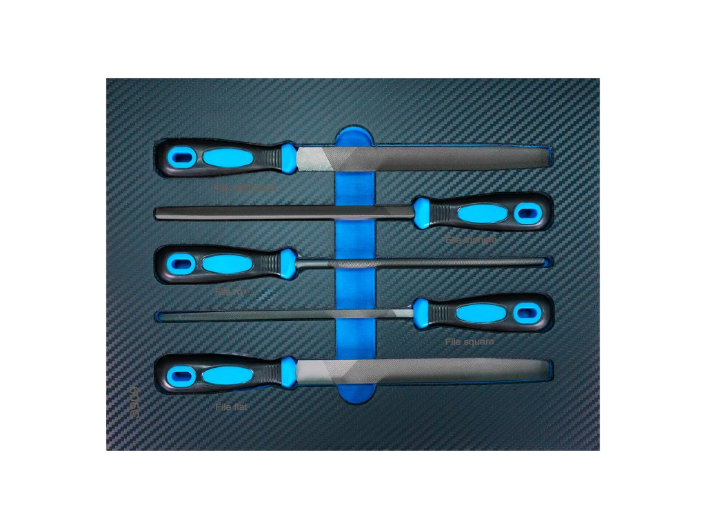 - Vložka do dílenského vozíku velikosti 3/3 obsahuje sadu pilníků určenou pro běžné i přesné dílenské práce.