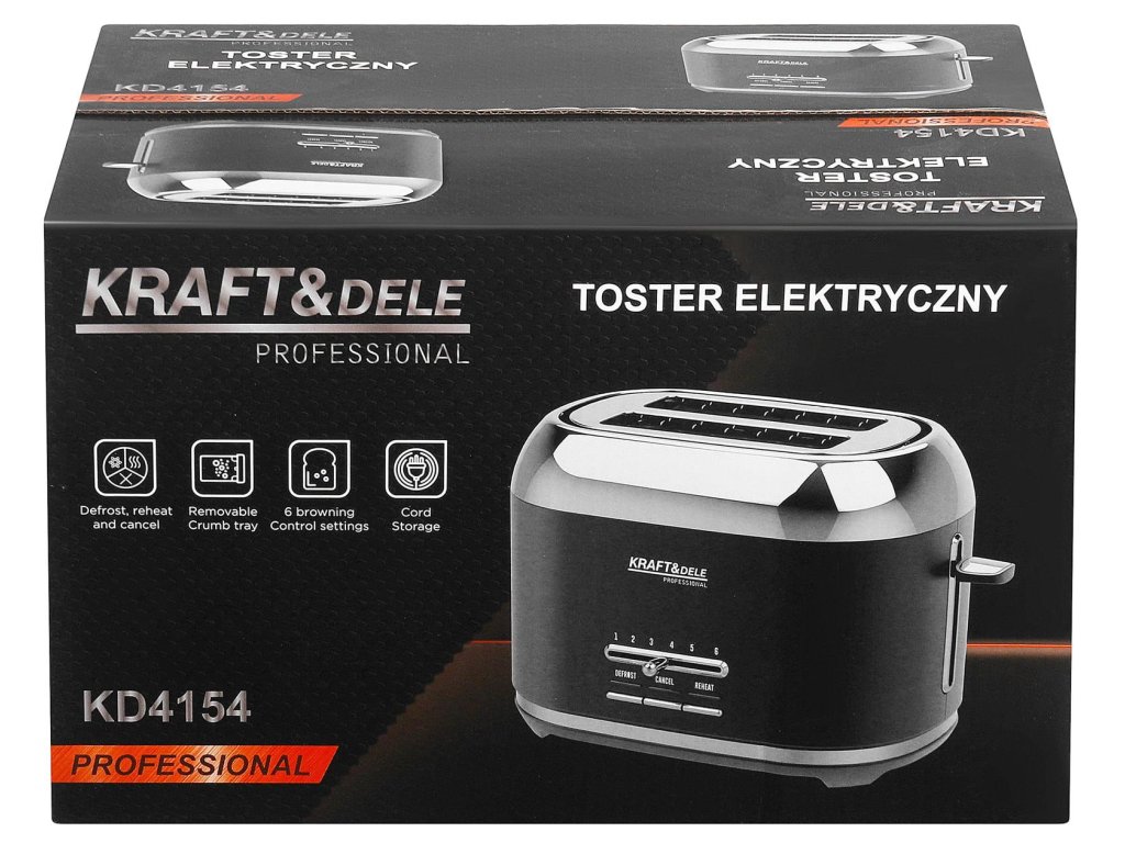Kraft&Dele KD4154, Elektrický toustovač 1000W | 2 krajíce, 6 stupňů opékání, rozmrazování, ohřívání, Anti-Stuck, vyjímatelná tacka