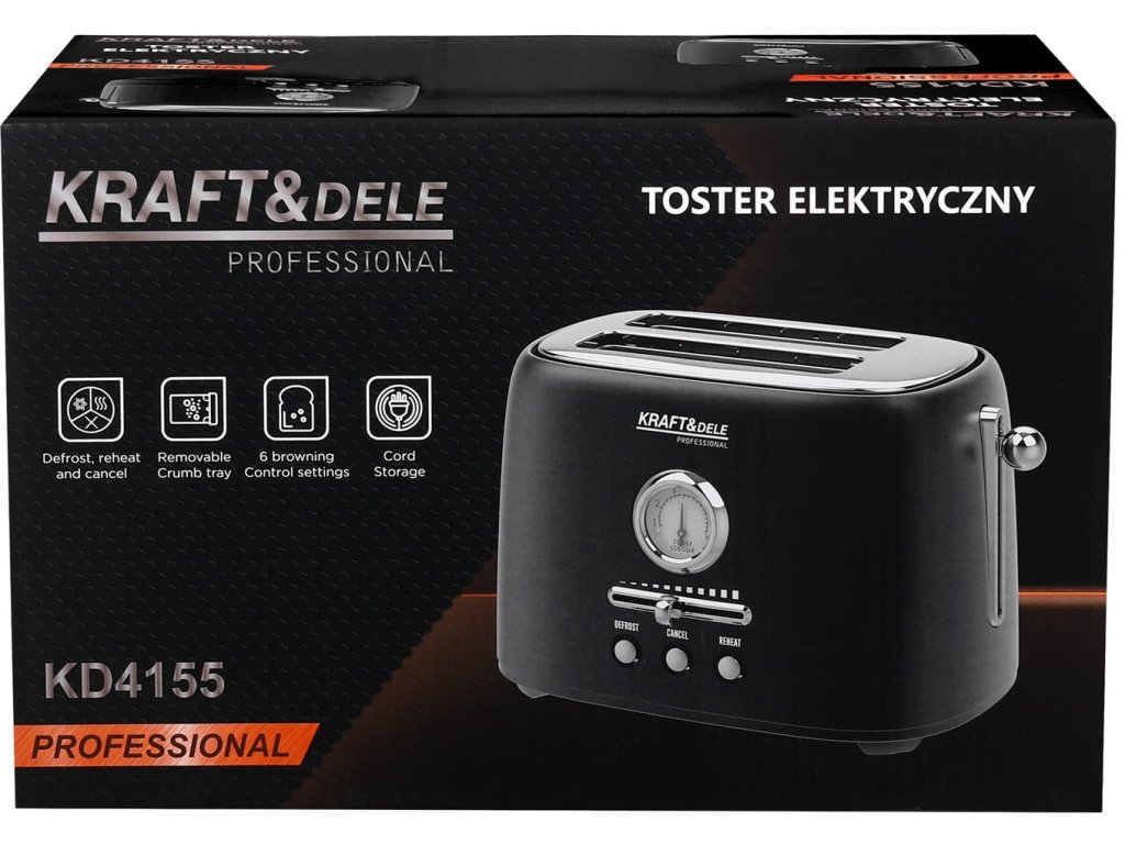 Kraft&Dele KD4155, Elektrický toustovač 1000W | 11 stupňů opékání, rozmrazování, podgrévání, Anti-Stuck