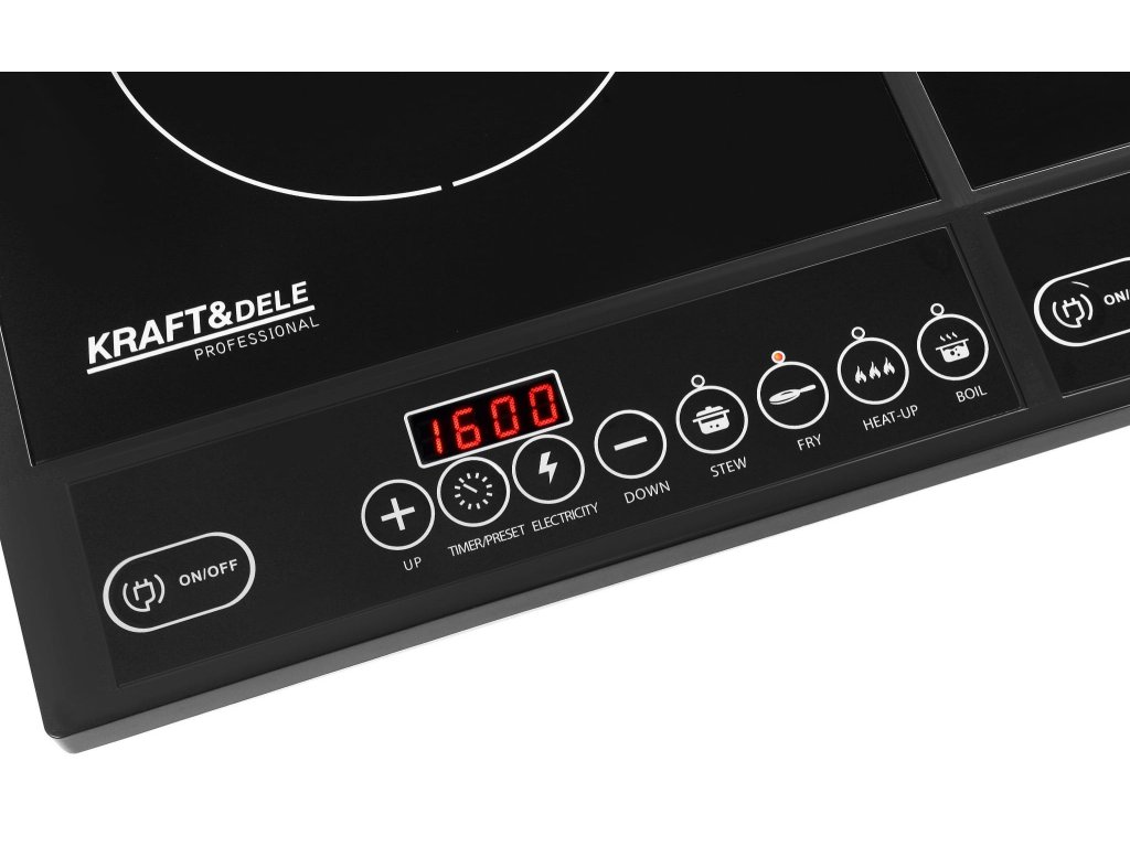 - Kuchyňská indukční deska KRAFT&DELE KD4167 nabízí efektivní a rychlou přípravu pokrmů díky dvěma varným polím s výkonem až 2000 W.