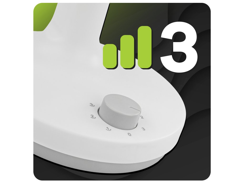 - nabízí 3 stupně regulace otáček, horizontální oscilaci a nastavitelný sklon pro maximální komfort