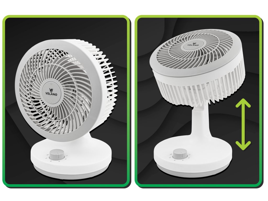 dobíjecí baterie 2000 mAh, nabíjení přes micro-USB4 úrovně výkonu a nastavitelný sklon do 45°tichý a kompaktní ventilátor vhodný pro domov, kancelář i cestování