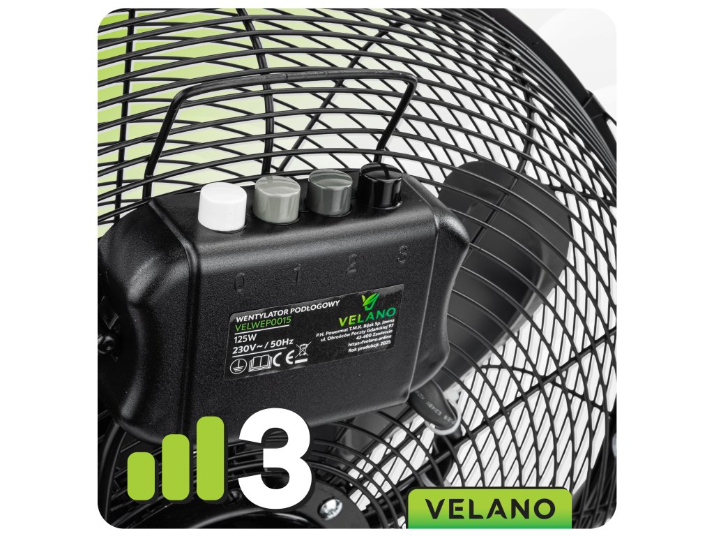 - ventilátor je vybaven výkonným 125W motorem, který mu umožňuje vytvářet silný proud vzduchu a účinně promíchávat vzduch v místnosti