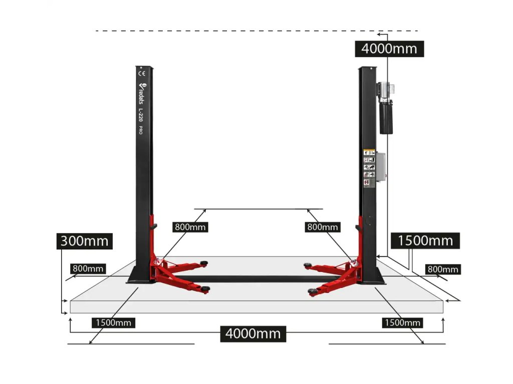 REDATS L-220 PRO – Špičkový dvousloupový zvedák pro osobní vozy a dodávky