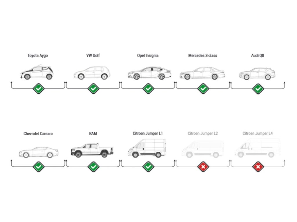 - teleskopická ramena s nastavitelnou úrovní umožňují práci s různými typy vozidel