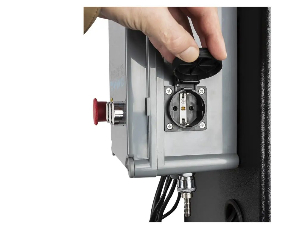 - zásuvka 230 V na ovládací skříňce usnadňuje připojení elektrického nářadí