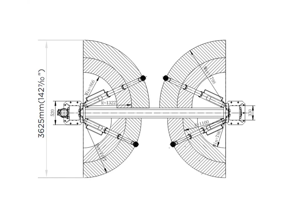 - asymetrická ramena zajišťují optimální vyvážení při manipulaci s vozidly