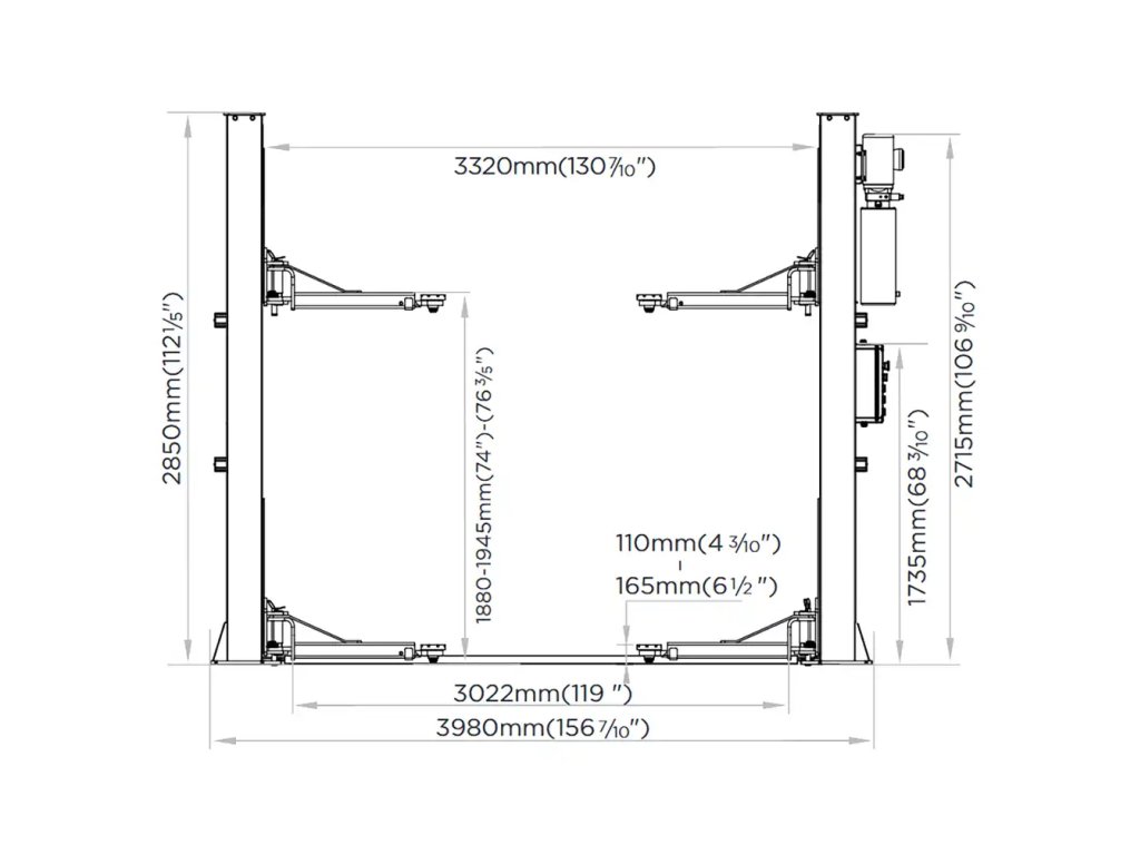 - výška zdvihu až 1945 mm umožňuje pohodlný přístup k podvozku a zavěšení vozidel