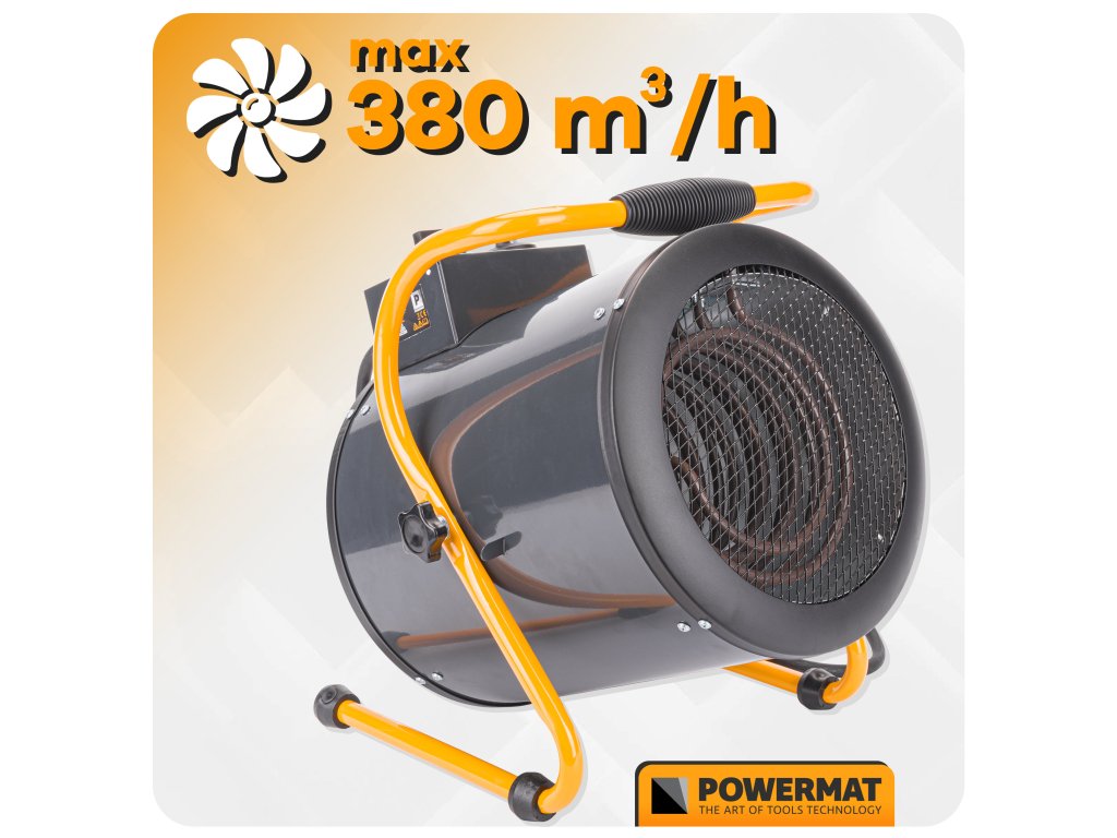 - vestavěný výkonný ventilátor s průtokem vzduchu 380 m³/h zajišťuje rychlou distribuci tepla