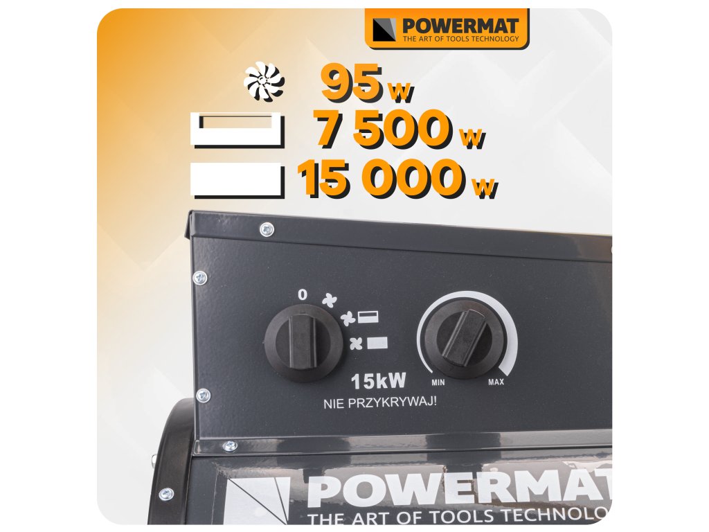 - nastavení výkonu: 95 / 7500 / 15000 W