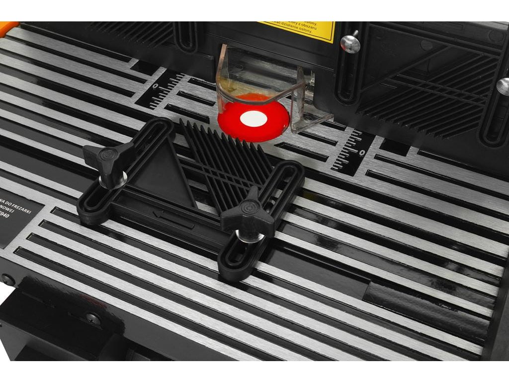 pracovní stůl má tři nastavitelné přítlačné hřebeny pro bezpečné vedení materiálu bez nutnosti pohybu frézkyposuvný úhlový doraz a redukční kroužky usnadňují přesné frézování v...