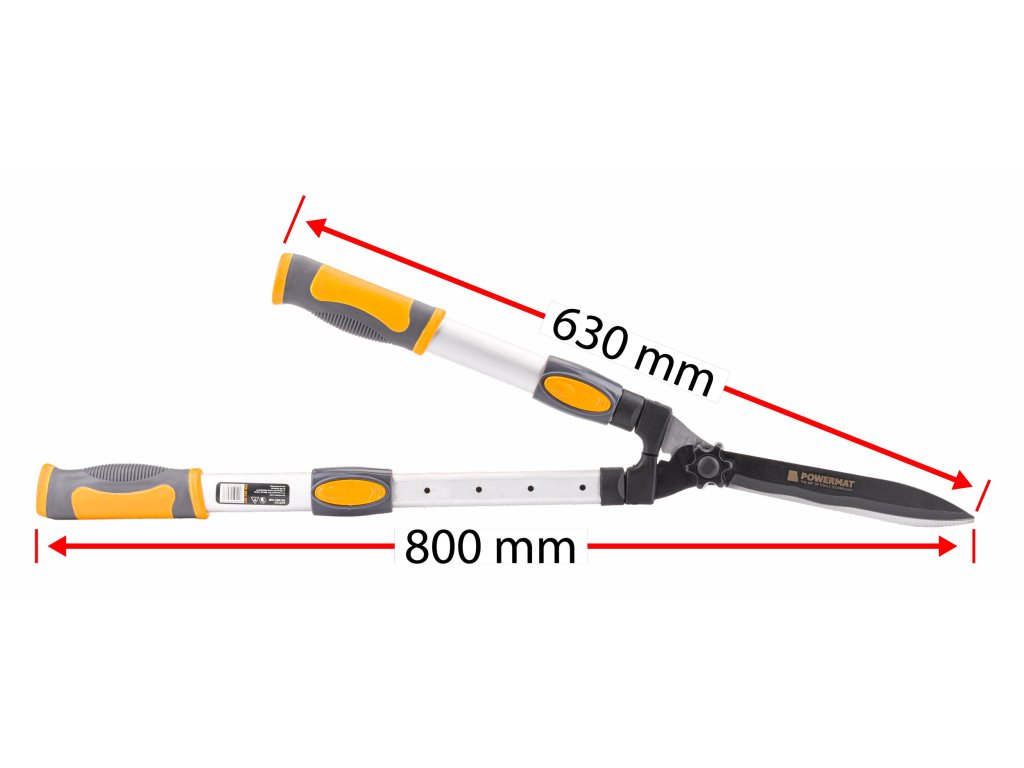 Ruční zahradní nůžky POWERMAT s celkovou délkou 800 mm jsou ideálním pomocníkem pro stříhání a údržbu živých plotů, keřů a stromů. Ocelové čepele zajišťují tvrdost a přesnost řezu, zatímco ergonomické rukojeti s gumovým povrchem poskytují bezpečný úchop i při vlhkých rukou.