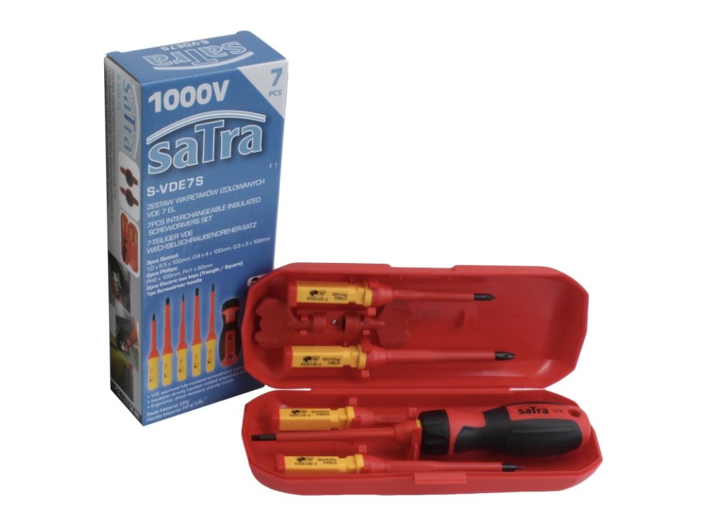 Set SATRA S-VDE7S nabízí vysokou bezpečnost díky izolaci s VDE certifikací, ergonomické provedení pro komfortní práci, odolnost a dlouhou životnost díky kalené oceli a snadnou univerzální výměnu hrotů pro různé typy práce. Ideální volba pro profesionály i kutily.