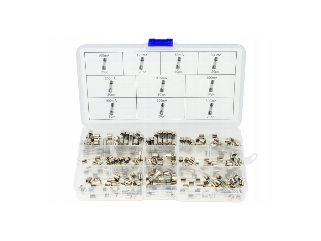 - sada obsahuje 200 skleněných pojistek v praktickém organizéru