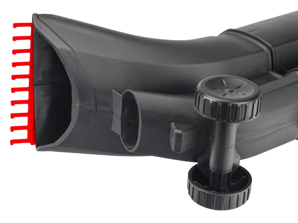 - praktické kolečka na výstupu vzduchu a nosný popruh usnadňují práci, zatímco výsuvné hrábě zvyšují univerzálnost použití