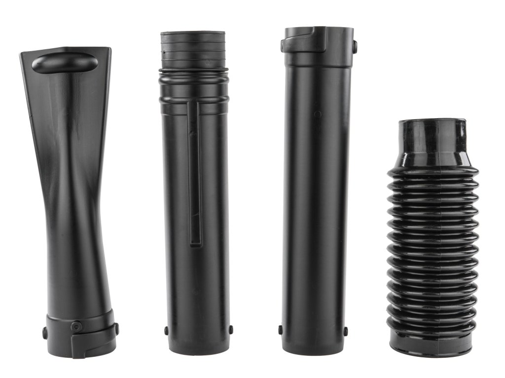 - ovládání je intuitivní díky joystickové rukojeti s plynovou spouští a vypínačem motoru, zatímco modulární trubice umožňují snadné sestavení a přizpůsobení délky výstupu