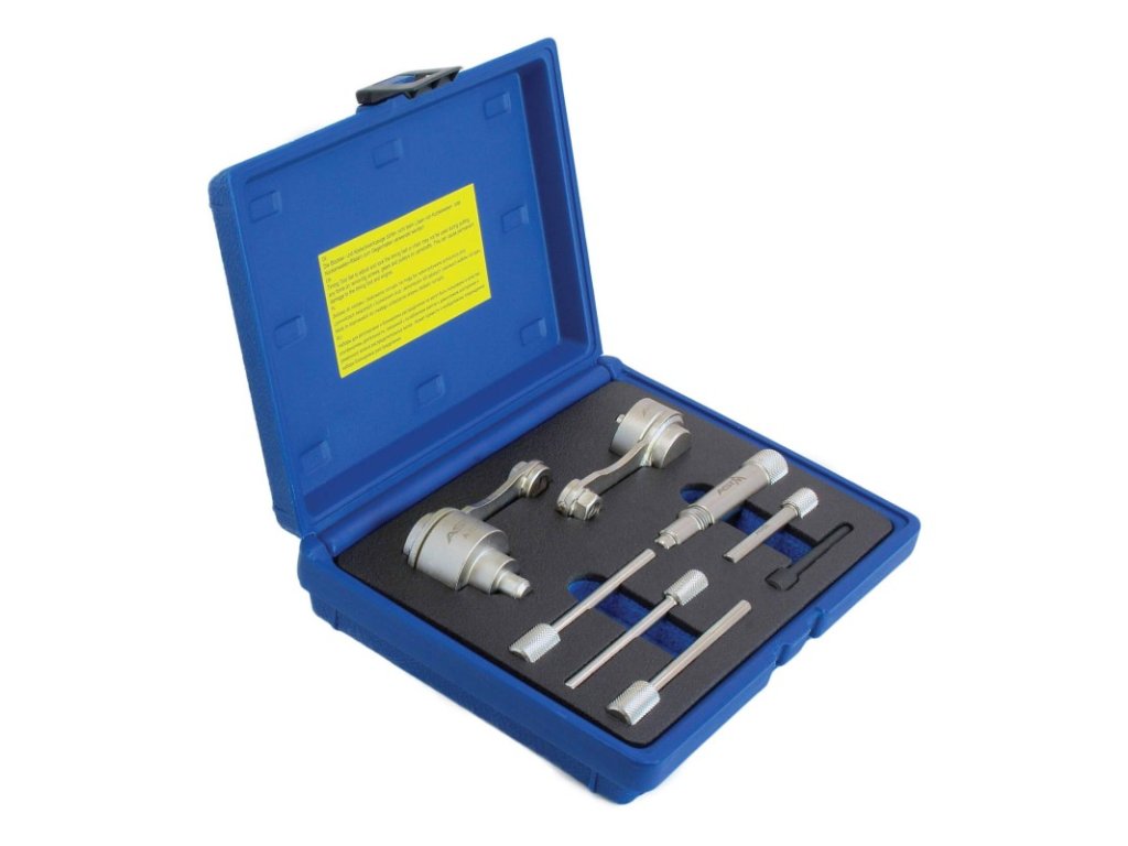 Sada pro aretaci rozvodů u vozů Jaguar a Land Rover. Určená pro motory 3.0 V6 a 5.0 V8. Zahrnuje nástroje pro seřízení a zajištění klikového hřídele. Obsahuje přípravky pro...