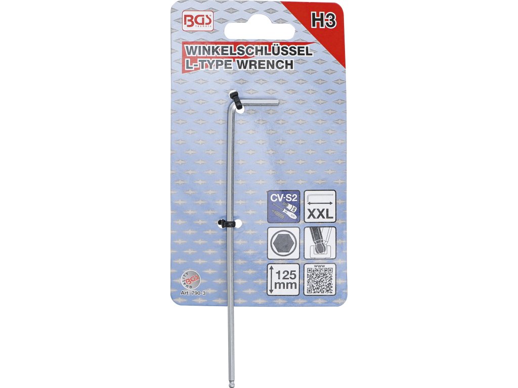 BGS 790-3, Zahnutý klíč (imbus) | velmi dlouhý | vnější šestihran / vnější šestihran s kulovou hlavou 3 mm