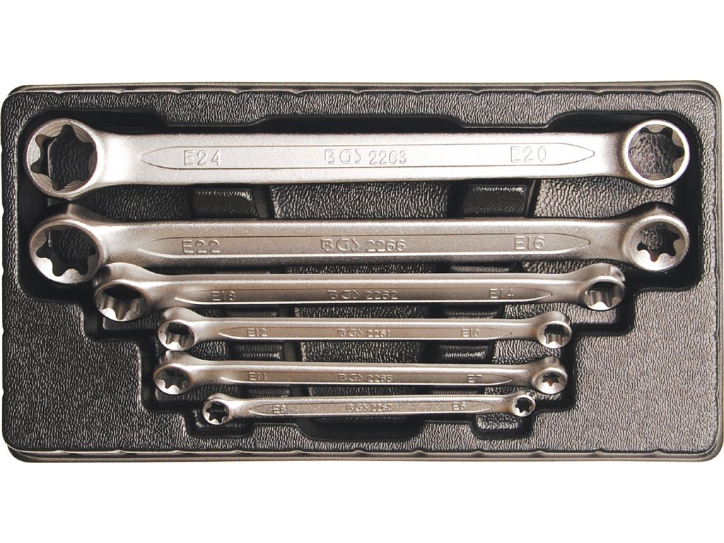 BGS 2268, Sada oboustranných očkových klíčů s očkovými hlavami E-profil | E6 x E8 - E20 x E24 | 6dílná
