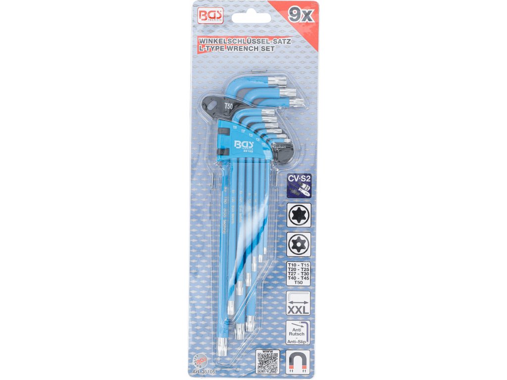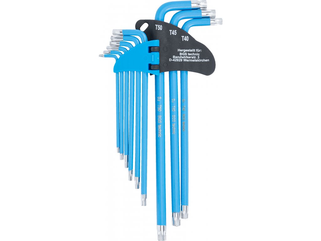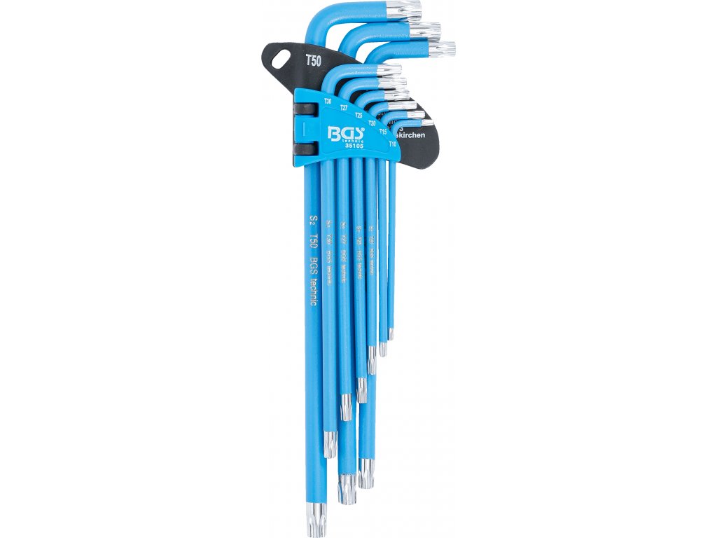 BGS 35105, Sada zahnutých klíčů | T-profil (pro Torx) / T-profil (pro Torx) s otvorem T10 - T50 | 9dílná