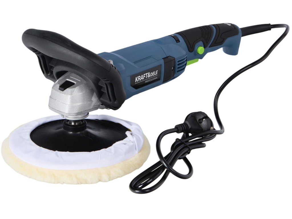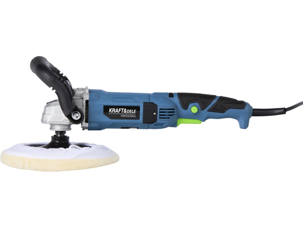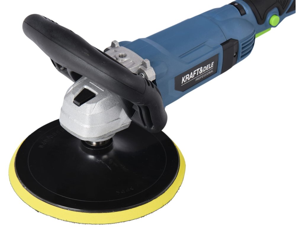 výkonná elektrická leštička Kraft&Dele KD3079 s příkonem 2650 Wkotouč o průměru 180 mm pro efektivní práciregulace otáček v rozsahu 500–3800 ot/minergonomická protiskluzová...