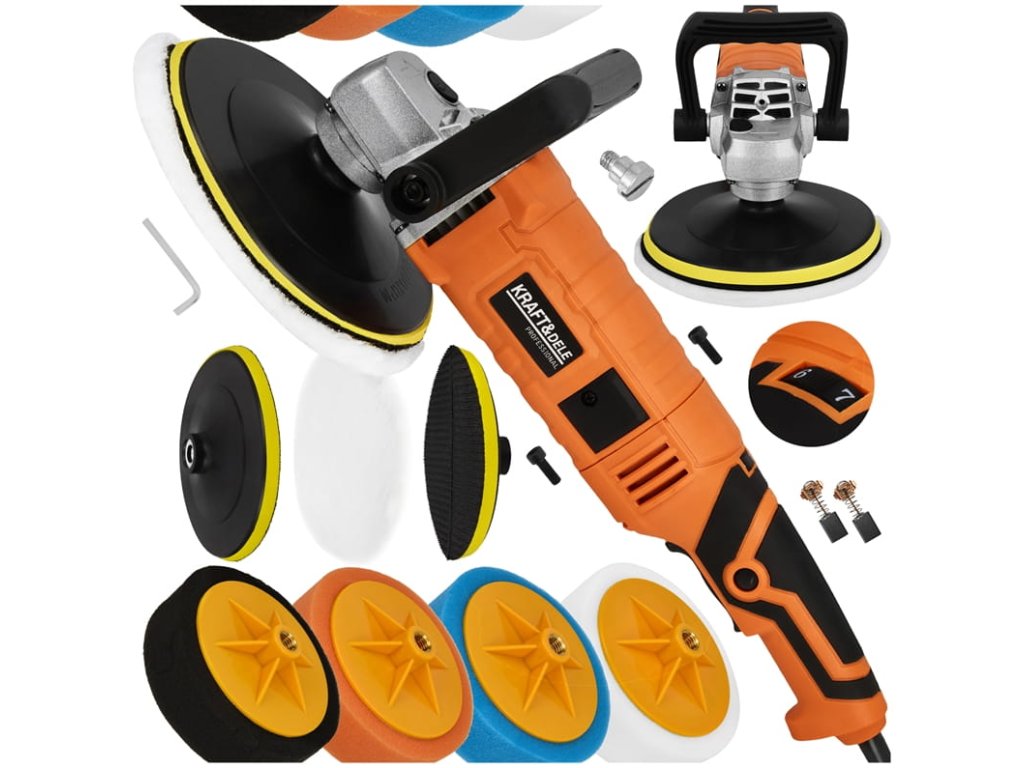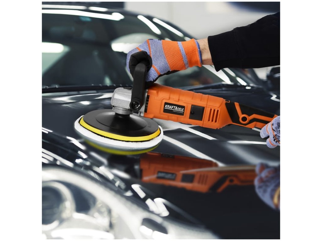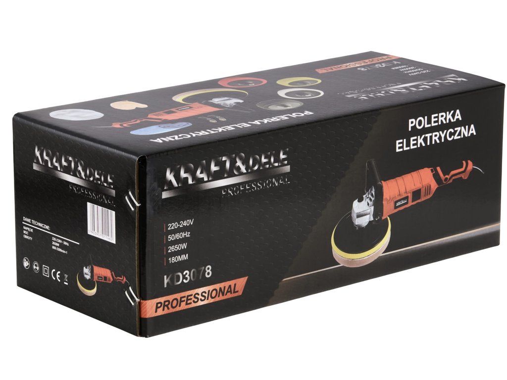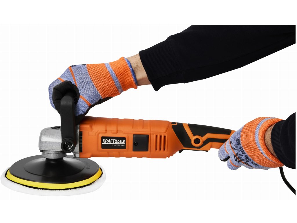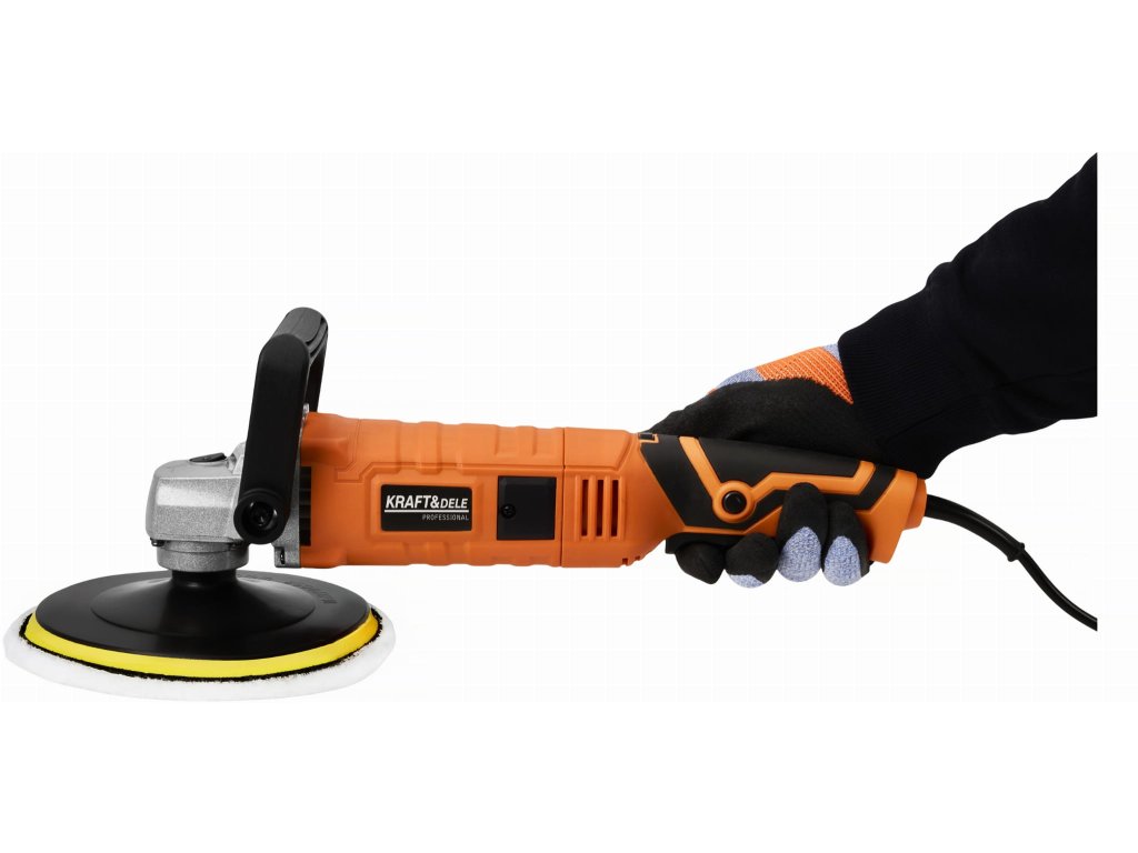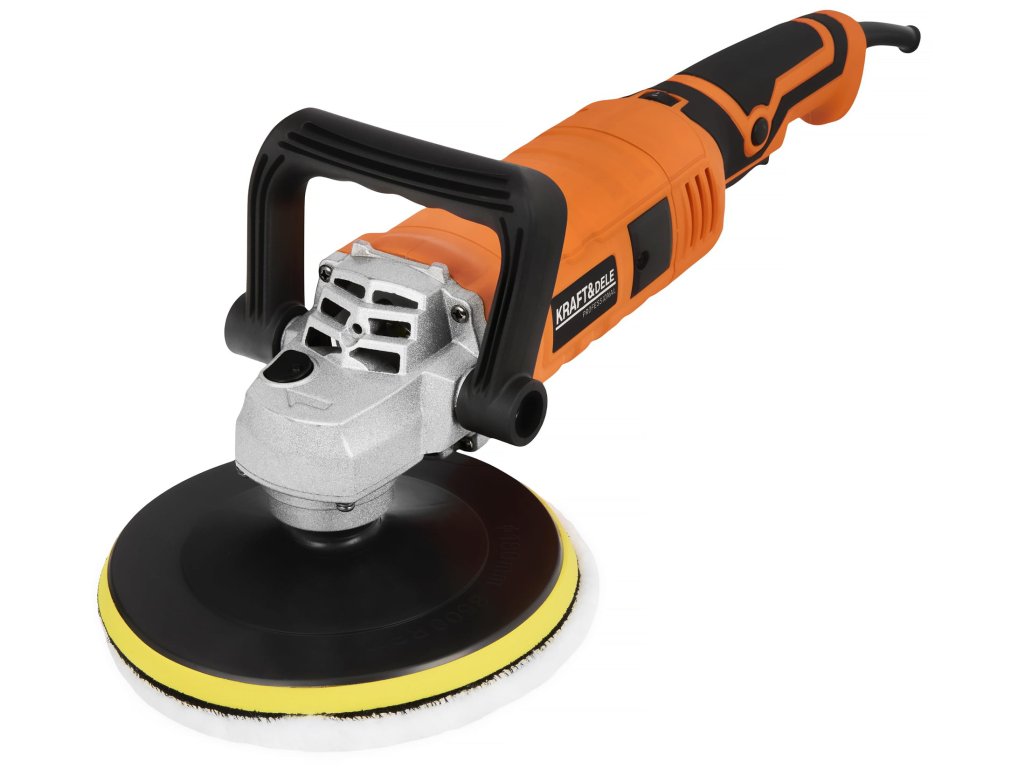 výkonná elektrická leštička Kraft&Dele KD3079 s příkonem 2650 Wkotouč o průměru 180 mm pro efektivní práciregulace otáček v rozsahu 500–3800 ot/minergonomická protiskluzová...