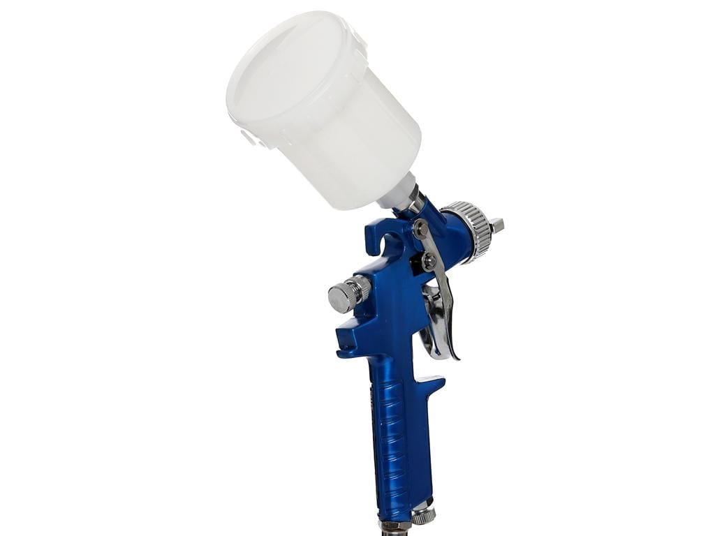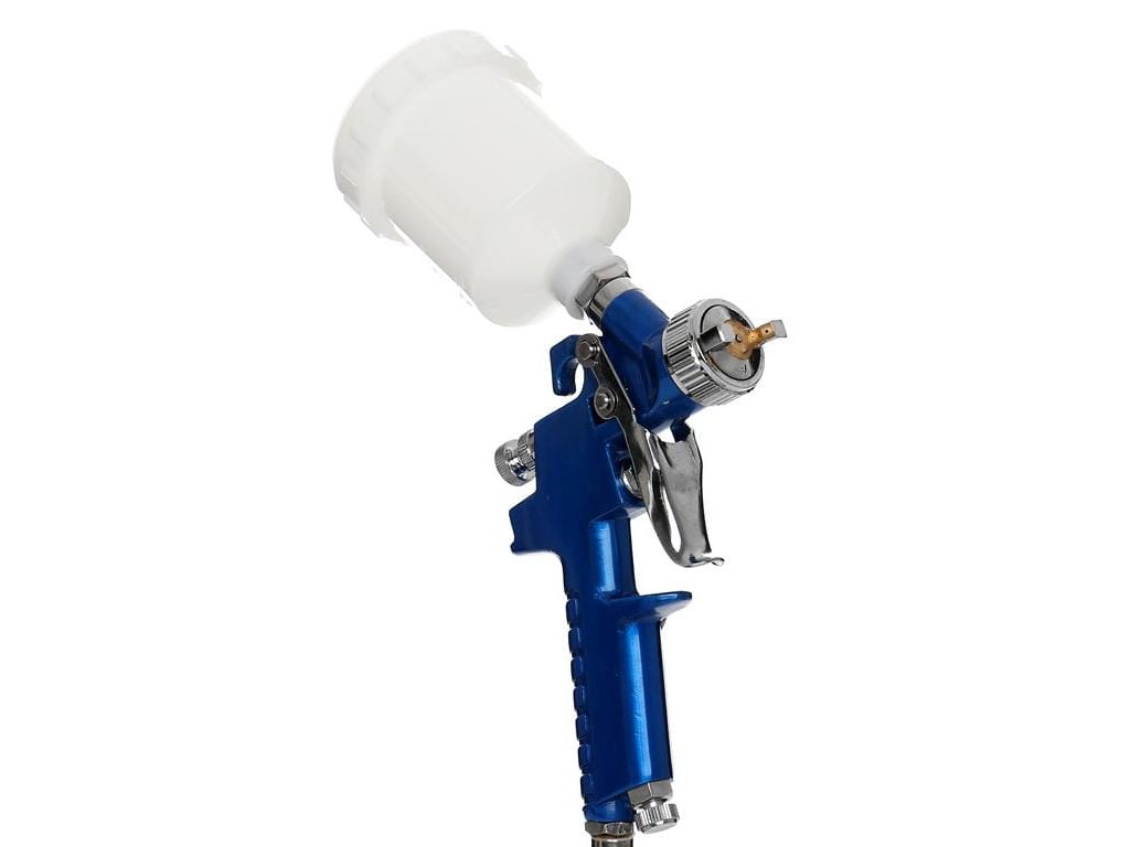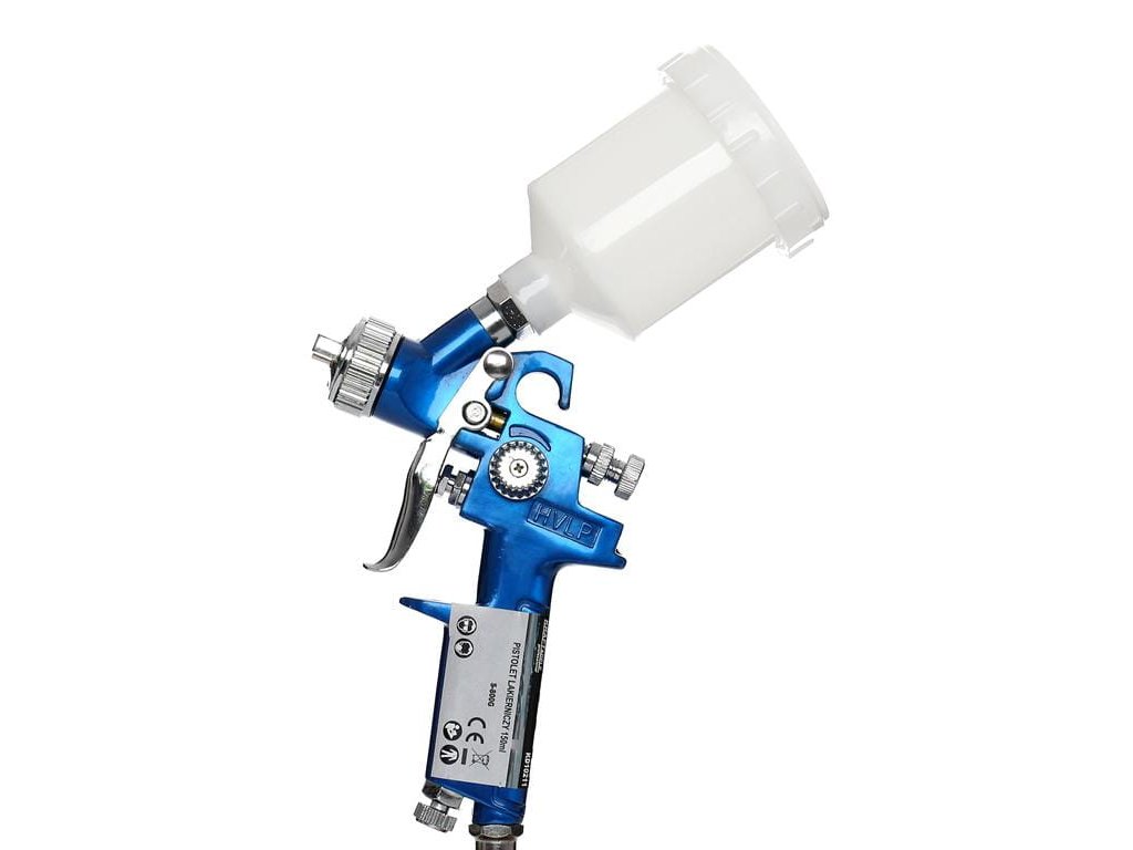 - Spotřeba vzduchu činí 141 l/min a zásobník pojme 150 ml barvy, což zajišťuje dlouhotrvající práci bez častých přestávek.