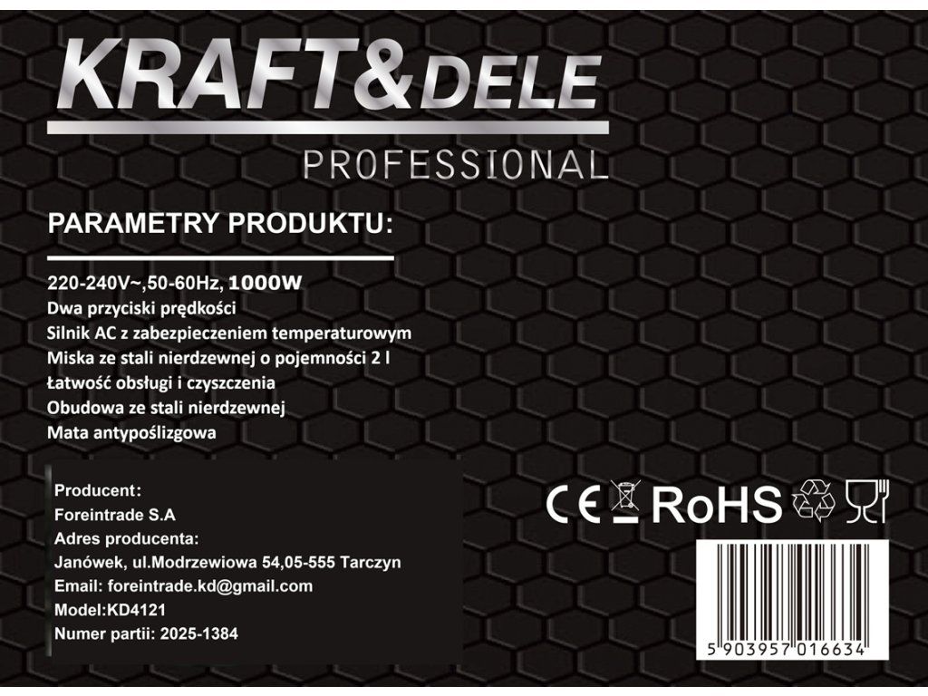 Kraft&Dele KD4121, Elektrický drtič masa a zeleniny 2 l