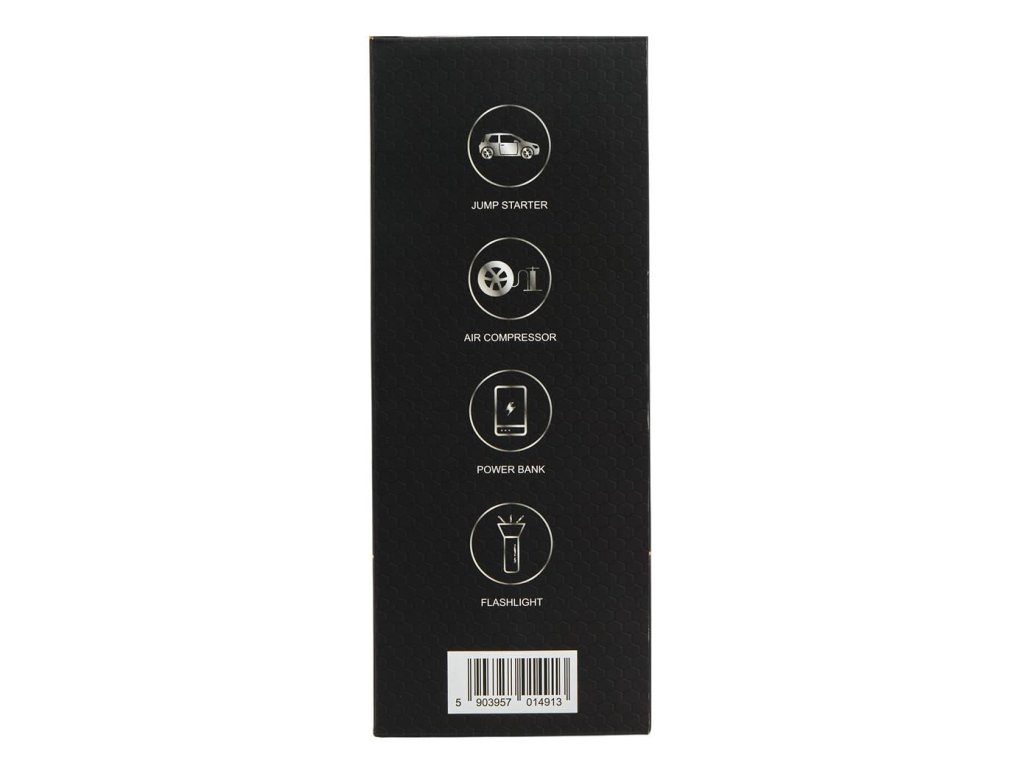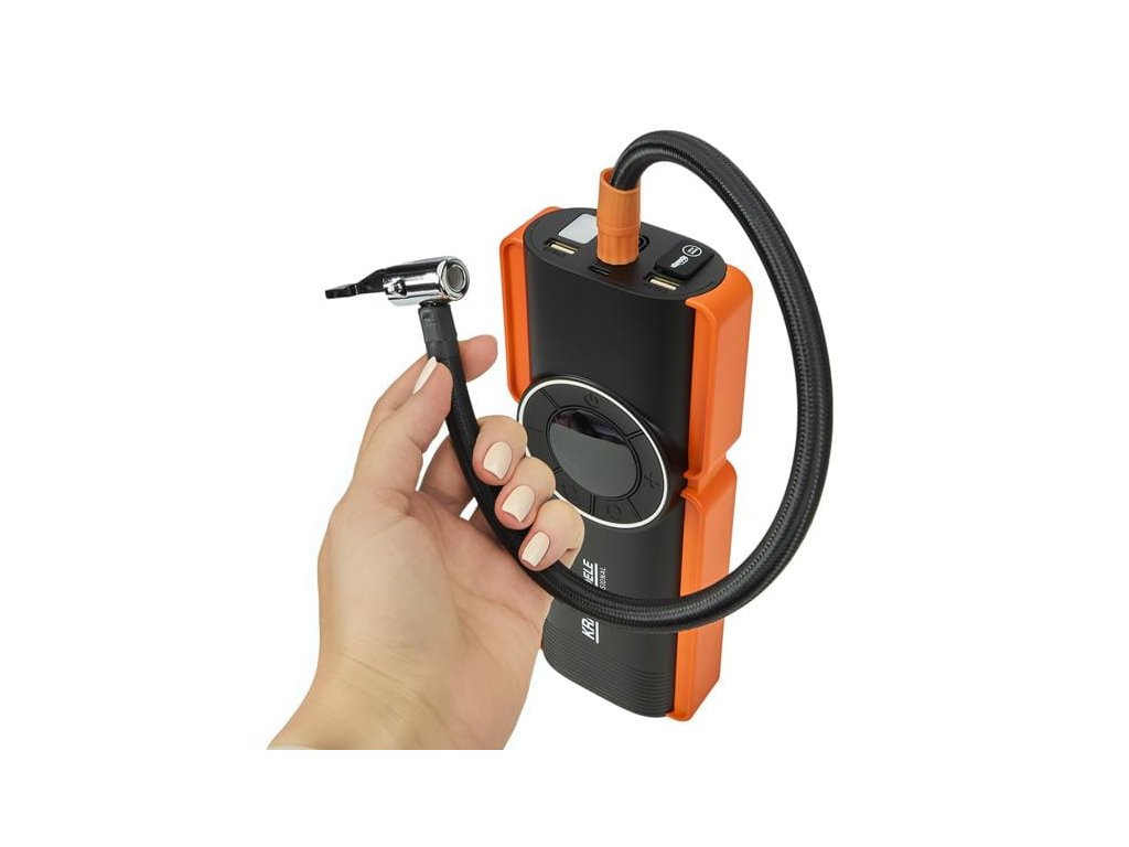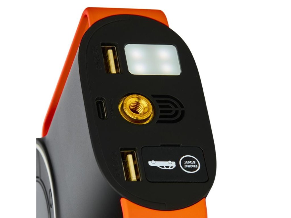 - sada kabelů: startovací, USB–USB-C / microUSB / lightning, USB–USB-C, kabel kompresoru s koncovkami