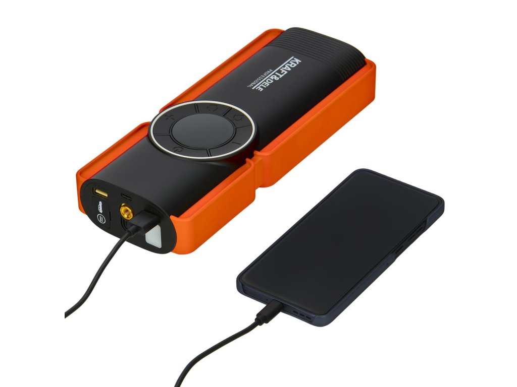 Kraft&Dele KD5347 je multifunkční jump-starter s vysokým startovacím proudem. Vestavěný inverter 250W umožňuje napájení 230V zařízení mimo síť. Kompresor s tlakem 11 bar pro...