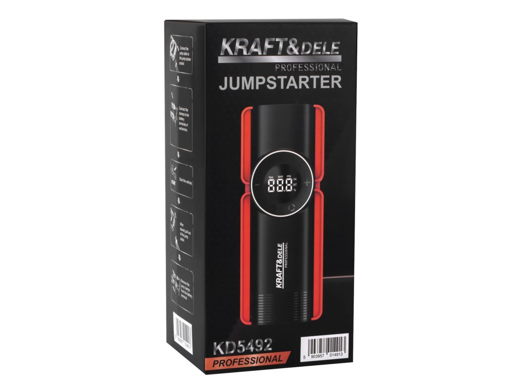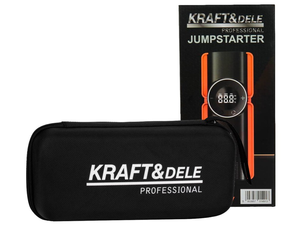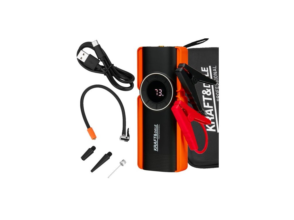 - multifunkční startér KD5492 značky Kraft&Dele kombinuje čtyři zařízení v jednom – startér, powerbanku, vzduchový kompresor a LED svítilnu