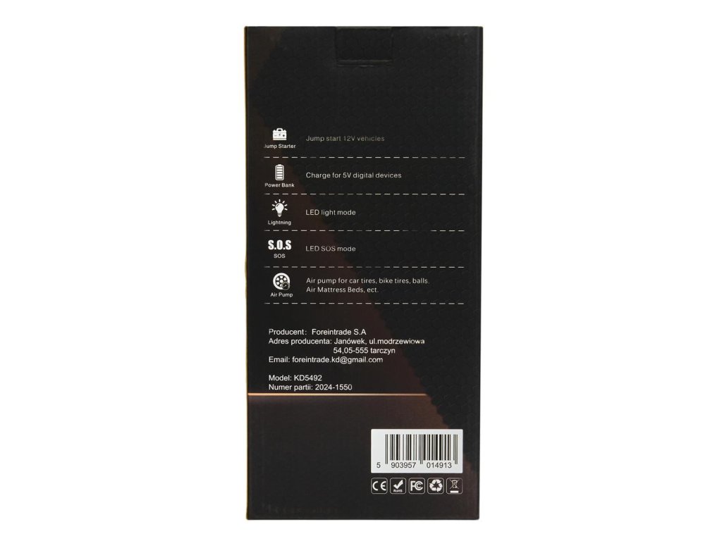 - multifunkční zařízení KD5492 (startér + powerbanka + kompresor + LED svítilna)