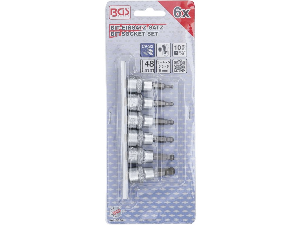 BGS 5109, Sada nástrčných hlavic | 10 mm (3/8") | vnitřní šestihran s koulí 3 - 8 mm | 6dílná