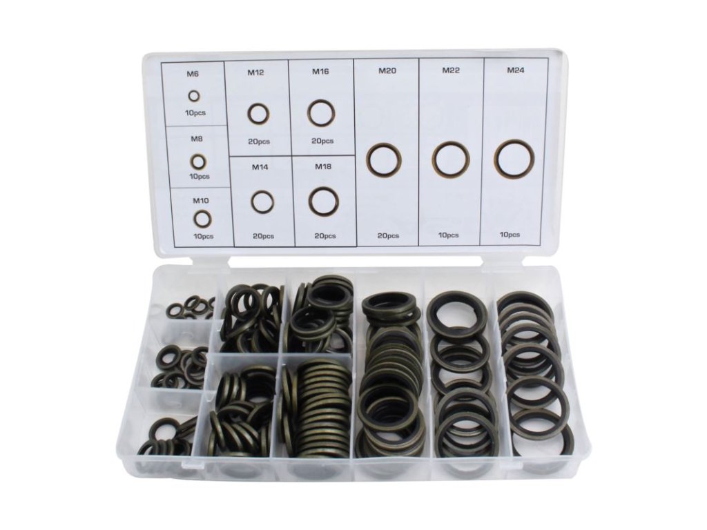 - Sortiment těsnění: různě velká lepená těsnění vhodná pro různé typy spojů a oprav.