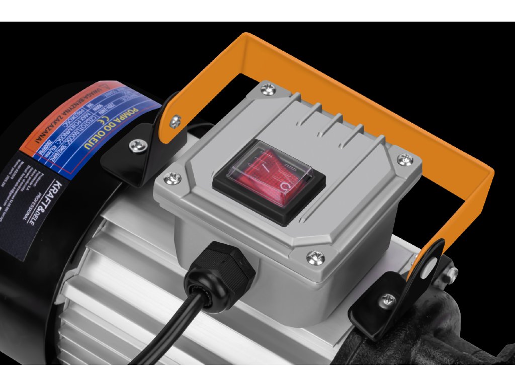 Kraft&Dele pompa do oleju KD3570 nabízí výkonný 900 W motor, rychlý průtok až 45 l/min, odolnost proti prachu a vlhkosti s krytím IP55, kompaktní design pro snadnou manipulaci a ideální univerzální použití s mnoha typy olejů pro dílny, servisy i zemědělství.