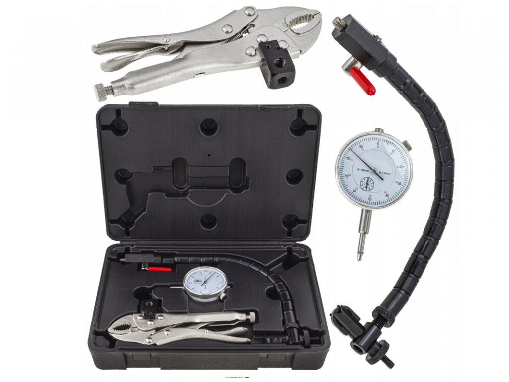 Sada pro kontrolu doběhu (házivosti) brzdových kotoučů je produkt určený pro profesionální dílny, autoservisy i dobře vybavené domácí garáže. Každá odchylka je zaznamenána na nanometru, který vše detekuje s přesností 0,01 mm. Rozsah měření od 0 do 10 mm. Vše zabalené v praktickém kufříku.